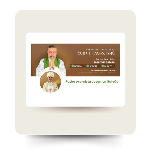 Participe das Missas de Cura, Libertação e EXORCISMO. Venha fortalecer sua fé e buscar alívio para corpo, mente e espírito. As Missas de Cura e Libertação são momentos especiais de oração, renovação e encontro com a GRAÇA DIVINA